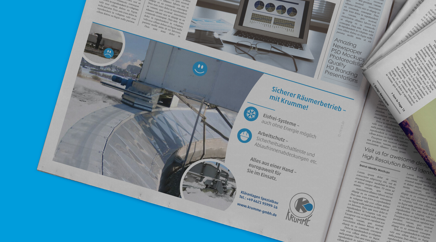 Zudem wurden für die Krumme GmbH Anzeigen für Fachmedien erstellt.